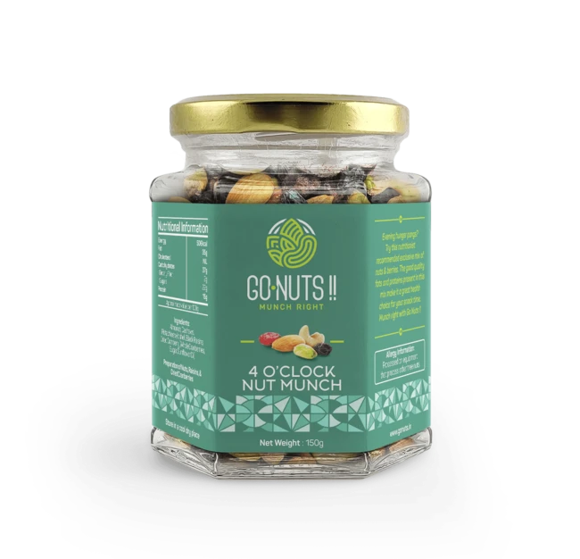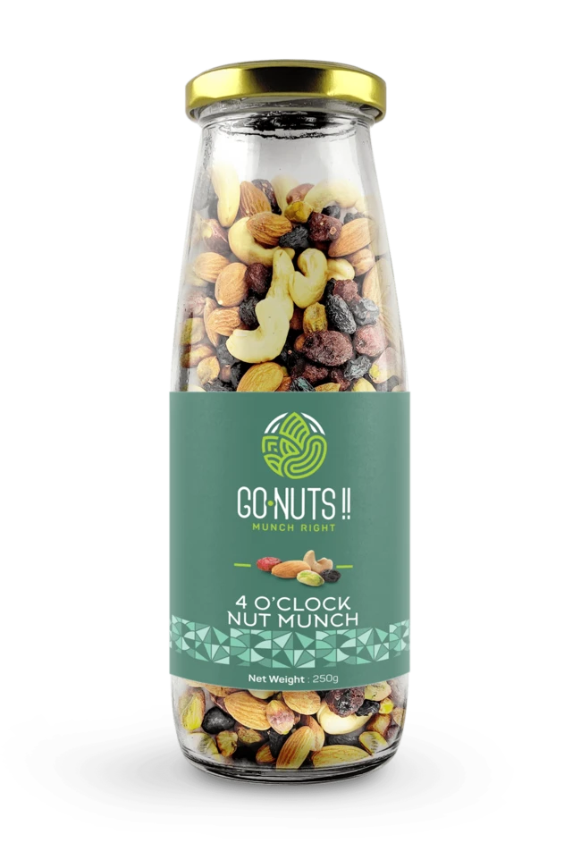 A snack you can reach for, anytime to soothe your rumbling stomach, Go Nuts’ 4 O’clock Nut Munch, is a tempting mix of perfectly roasted and lightly salted nuts, dry fruits and berries. Comprised of Almonds, Cashews, Pistachios, Black Raisins & Dried Cranberries it contains fats that are good for you, proteins and vitamins. A healthy alternative to fried snacks, go nuts with these munchies as they keep you feeling full for longer and as the name suggests it is the ideal snack to munch on for your evening hunger pangs.