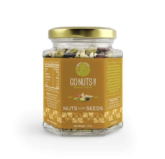 Attention all health addicts and fitness freaks! This scrumptious all day munch mix was created by Go Nuts, just for you. High in proteins & fibers, it is chock full of nutrients that come from seeds (Pumpkin seeds and Sunflower seeds), berries (Dried Cranberries and Black Raisins) and nuts (Cashews and Pistachios), enhanced with just a hint of salt.