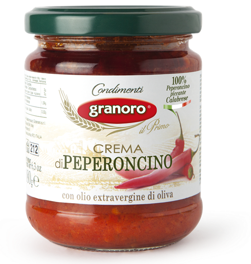 Granoro Calabrese Spicy Chilli Cream is produced only with fresh red chillies harvested in Calabria, appreciated for their particular aroma and spiciness, different from the common chilli. Chopped and made creamy, they are seasoned with extra virgin olive oil, packaged under glass and stabilized with the sterilization process. The Granoro Calabrese Spicy Chilli Cream is therefore obtained in a natural and genuine way, without the use of preservatives and dyes.