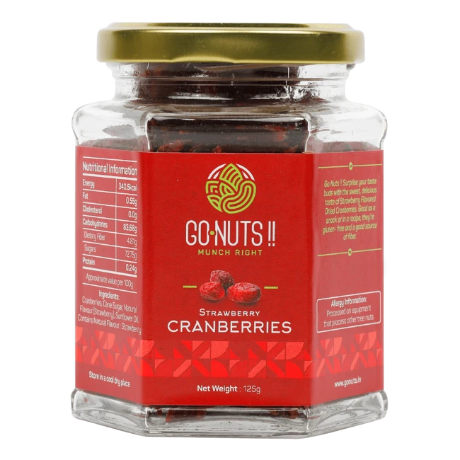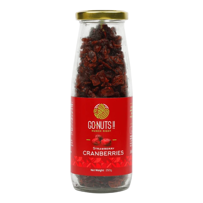 For a surprise burst of flavor, try our delicious strawberry infused dried cranberries. Add ‘em to your sandwiches, sprinkle them on your salads or use them to beautify your cakes, the possibilities are endless!